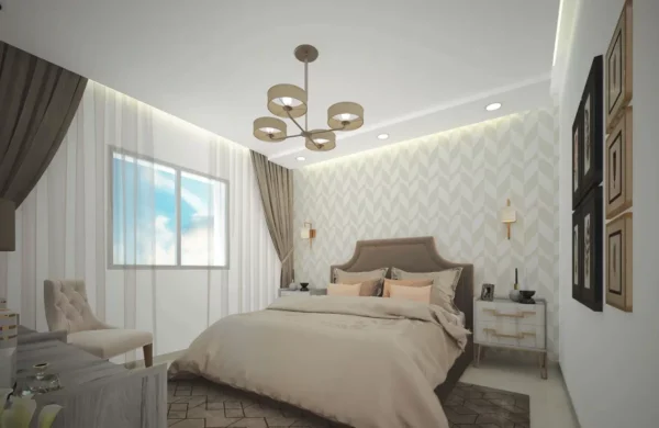- Faux plafond en plâtre pour la totalité de l’appartement.