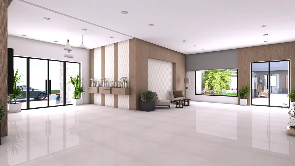 Marbre Kadhel 1er choix pour les salons, Entrées et couloirs de circulations des appartements.