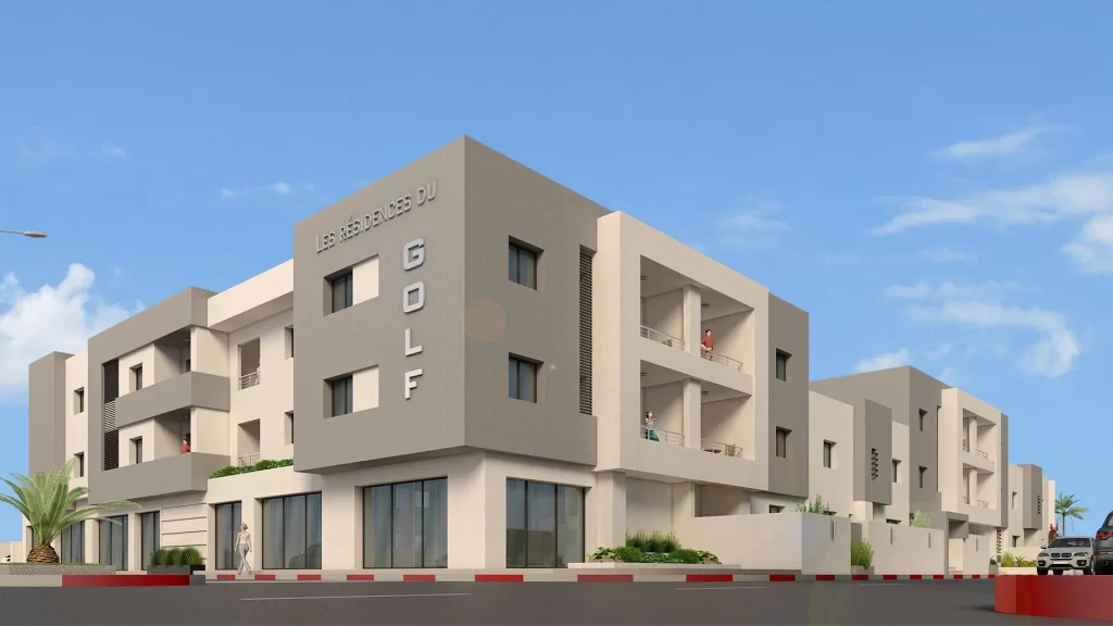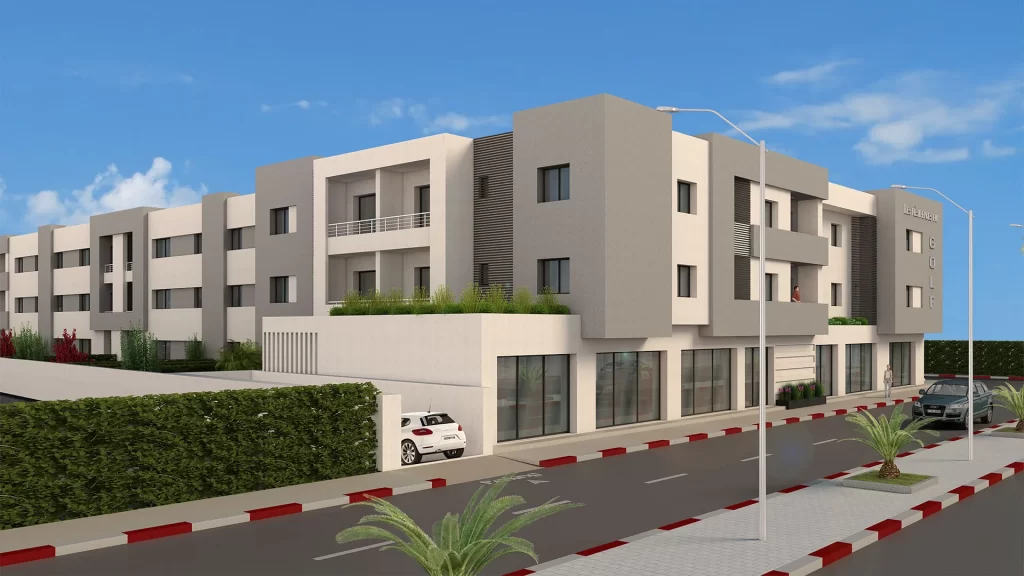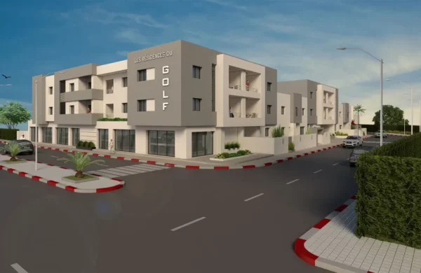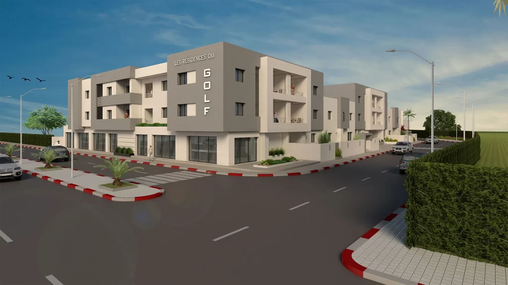 Bénéficiant d’un emplacement unique sur l’étendu du terrain du GOLF de la SOUKRA, l’ensemble résidentiel et commercial « LES RESIDENCES DU GOLF » s’intègre dans son milieu urbain par son architecture moderne et sa volumétrie épurée.
